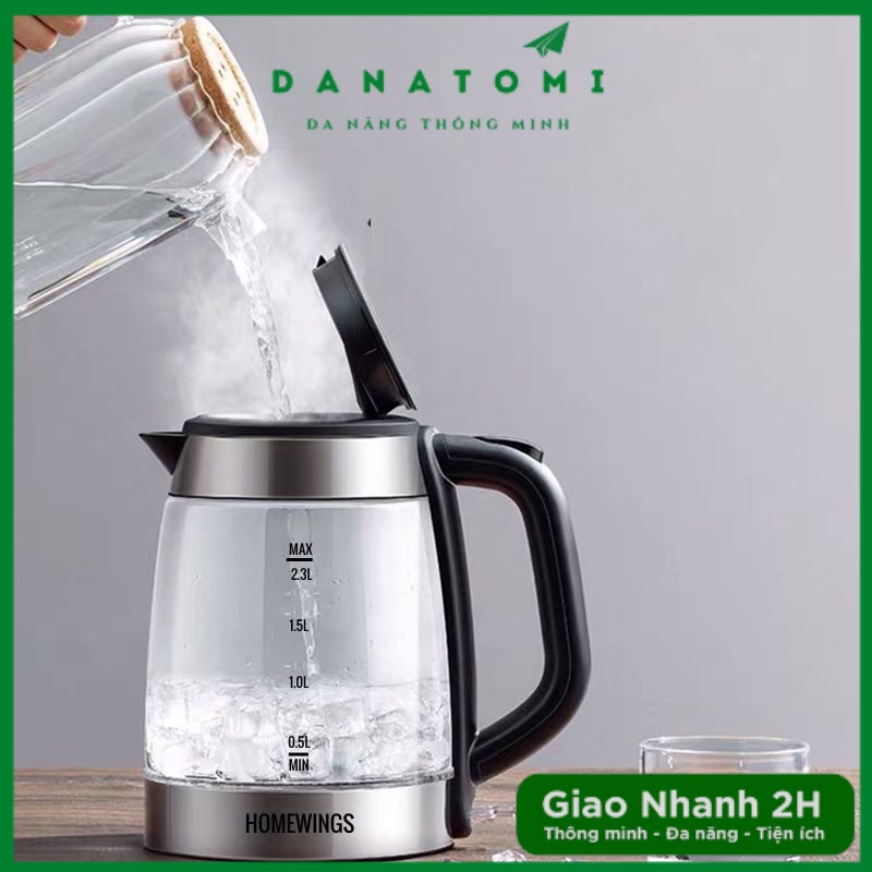 [HOT] Ấm Siêu Tốc HOMEWING Thủy Tinh 2,3L, Ấm Điện Đun Nước Cao Cấp 1800W