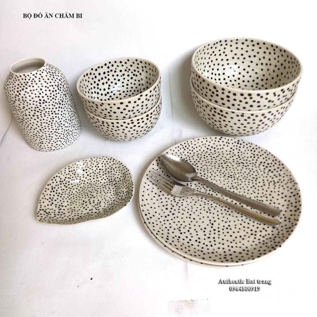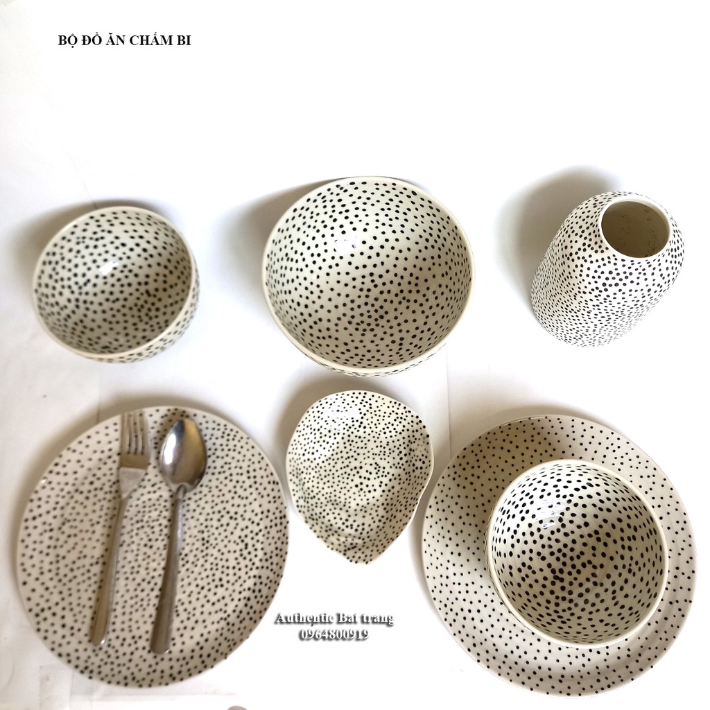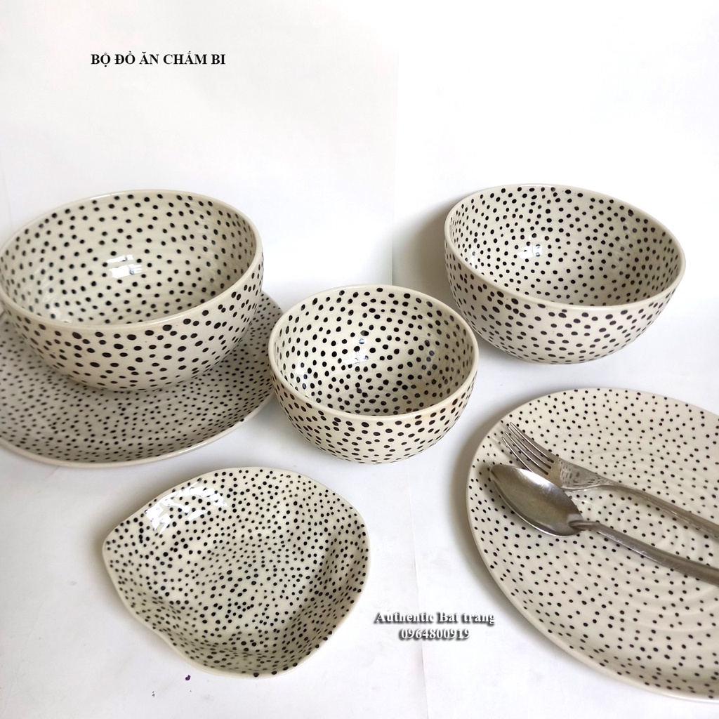 "HOT" Bộ đồ ăn chấm bi vẽ tay thủ công SIÊU ĐẸP - Xưởng gốm sứ Authentic bat trang
