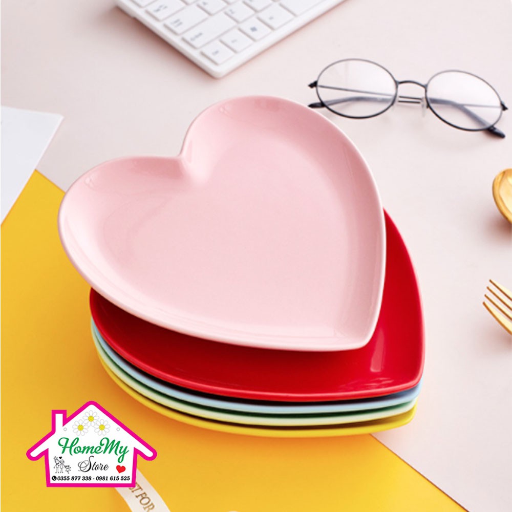 [Hot] Đĩa sứ 💎 Đĩa gốm trái tim chịu nhiệt sứ cao cấp dùng trong lò vi sóng lò nướng an toàn Homemy Store decor• Đĩa tim 4 màu