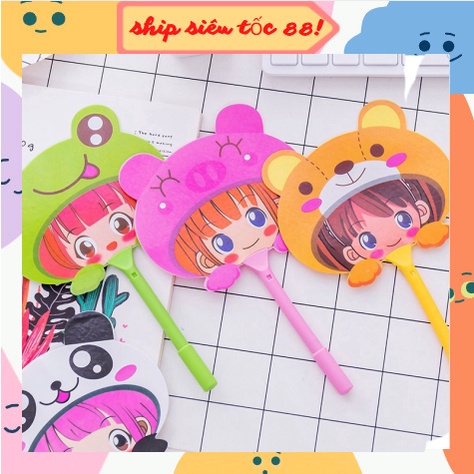 [ HOT HOT] Bút bi thiết kế kiêm quạt cầm tay in hình hoạt hình dễ thương sáng tạo 88236 SHIP SIÊU TỐC88