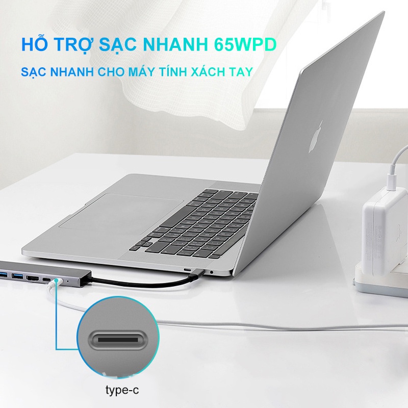 Máy tính & Laptop > Phụ Kiện Máy Tính > Bộ chia cổng USB & Đọc thẻ nhớ || {HOT} Hub Type C 8in1-Cổng chuyển đổi HUB USB Type-C to HDMI,USB 3.0,0SD,TF,RJ45,PD Type-C cho Laptop Macbook{NBZJQ}Còn hàng