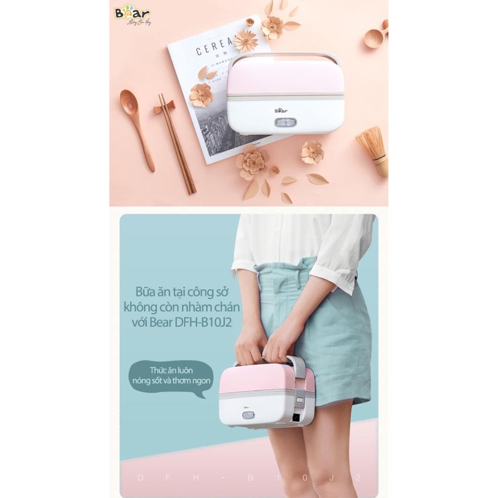 [HOT - XẢ KHO] Hộp cơm cắm điện mini văn phòng Bear DFH-B10J2 giữ nhiệt, hâm đóng và tự nấu chín thức ăn đa năng