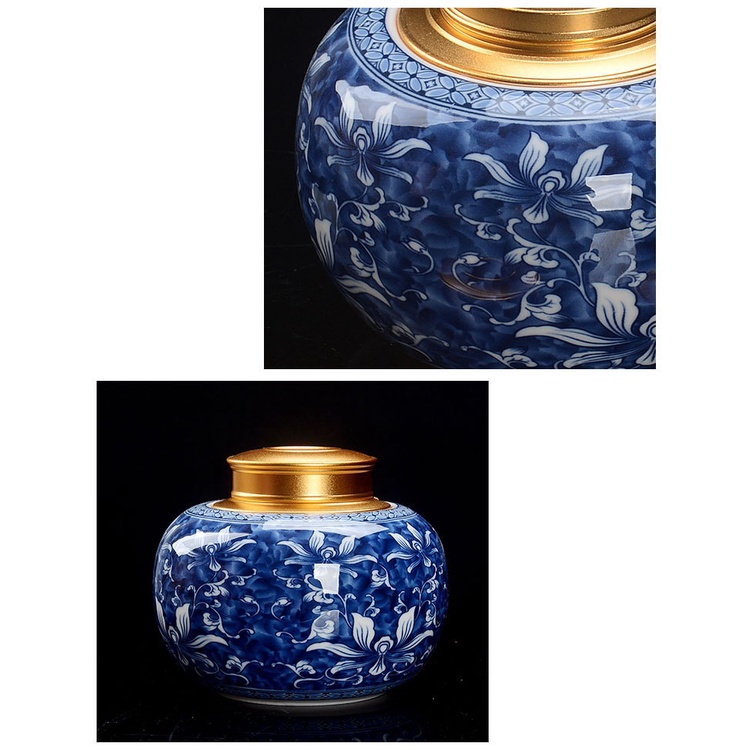 Nhà cửa & Đời sống > Dụng cụ nhà bếp > Dụng cụ pha trà, cà phê || Hũ đựng trà Men Ngọc Họa Tiết Mẫu Đơn nắp đồng 02 lớp vặn ren siêu khítCòn hàng