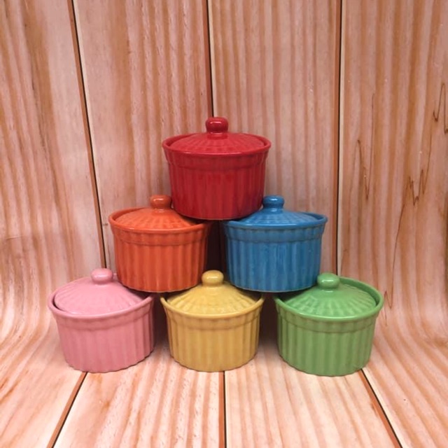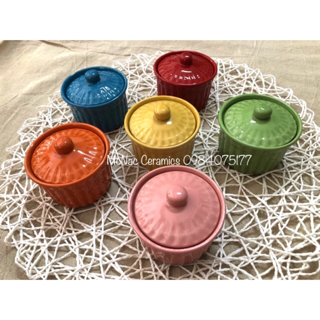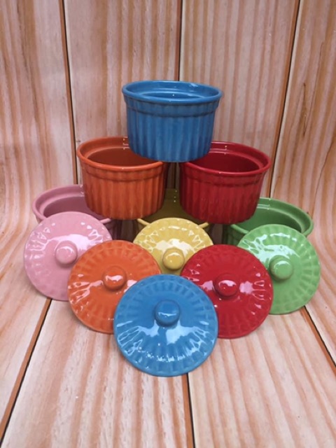 Nhà cửa & Đời sống > Dụng cụ nhà bếp > Dụng cụ nướng & trang trí bánh || Hũ sứ ramenkin có nắp cốc sứ làm plan sữa chua caramen nhiều màuCòn hàng