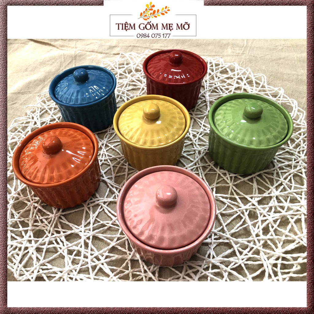 Hũ sứ ramenkin có nắp cốc sứ làm plan sữa chua caramen nhiều màu