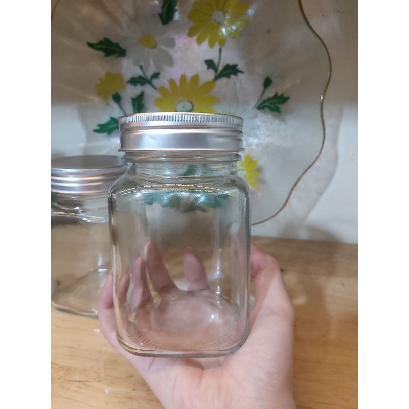 hủ thủy tinh thân vuông nắp nhômdung tích 380ml