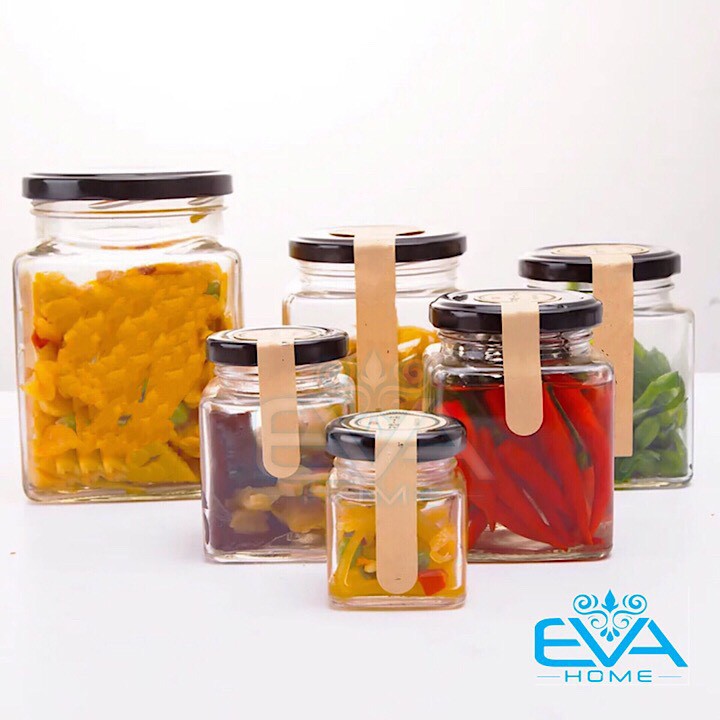 - Hủ thủy tinh vuông Dùng đựng thực phẩm : Bánh kẹo, Thực phẩm khô, Các loại hạt, Ngâm dưa cải, đồ chua,..