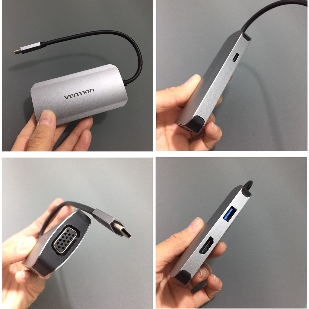 Hub / bộ chuyển cổng Type-C 4 trong 1 thương hiệu Vention, Model: TOA-Tên sản phẩm: Multi-function USB-C 4-in-1 Docking Station Aluminum Alloy Type