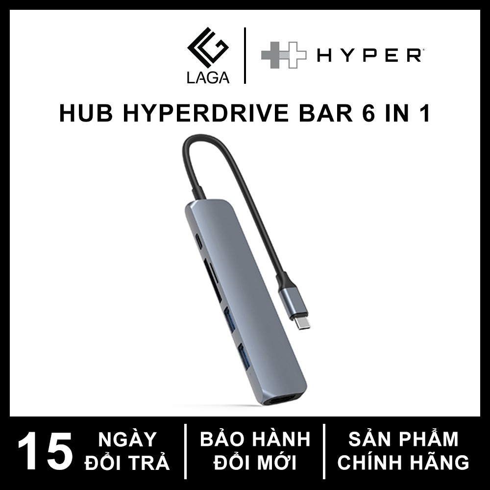 Hub Chia Cổng HYPER HyperDrive Bar 6 in 1 USB-C Sang HDMI 4K USB-C Power Delivery PD USB 3.0 SD Micro SD - HD22E