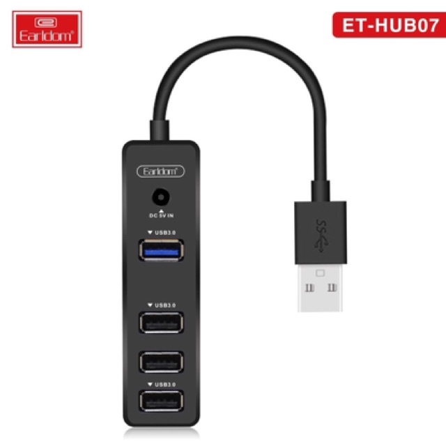 🌟🌟Khi nhu cầu sử dụng ngày càng lớn các sản phẩm hỗ trợ đính kèm laptop nhiều và cần nhiều hơn nữa cổng giao tiếp bằng USB thì Earldom cho ra đời sản phẩm HUB -07.✅Chuyển đổi cổng USB sang 1 cổng USB 3.0, 2 cổng USB 2.0 và 1 nguồn điện DC 5V