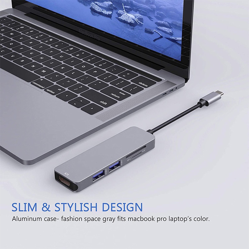 Kết nối đầu vào: USB type-C Kết nối đầu ra: 1x HDMI ; 2x USB 3.0 ; 1x đọc thẻ SD ; 1x đọc thẻ TF. Bộ mở rộng cổng USB type-C sang HDMI và Hub USB 3.0 được thiết kế để kết nối MacBook có cổng USB-C với màn hình hiển thị có cổng HDMI với độ phân giải lên đến Full HD 4K/1080p Các cổng USB 3.0 tiêu chuẩn cho phép bạn kết nối các thiết bị như ổ đĩa flash của bạn hoặc máy ảnh hoặc USB để đồng bộ và truyền tải dữ liệu , phim ảnh , ca nhạc ... Tốc độ truyền tải của cổng USB 3.0 lên đến 5Gbps ( gấp 10 lần so với cổng USB 2.0) Kích thước : 20,8cm * 3,2cm * 1cmGiới thiệu sản phẩm USB-C / M sang HDMI / USB3.0A / F + SD / F + T / F là cáp mở rộng truyền video, thiết bị đầu vào có giao diện USB-C cho điện thoại di động, máy tính bảng, máy tính xách tay, , USB- Kích thước giao diện C nhỏ, hỗ trợ chèn tiến và lùi, truyền dữ liệu, đầu ra HDMI hỗ trợ độ phân giải cao 3840X2160P / 30HZ, màn hình HD của thiết bị đầu ra, TV LCD,