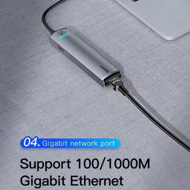 HUB CHUYỂN TYPE C BASEUS MECHANICAL EYE 6 IN 1 TYPE-C TO 3USB3.0 TYPE-C PD HDMI RJ45-LAN CHÍNH HÃNG bạn có thể dễ dàng kết nối và chia sẽ dữ liệu từ Smartphone , tablet, Laptop/ Macbook với các thiết bị ngoại vi, ổ đĩa ngoài qua cổng type C và các loại màn hình lớn để chia sẽ hình ảnh / video qua cổng HDMI .HUB CHUYỂN TYPE C BASEUS MECHANICAL EYE 6 IN 1 TYPE-C TO 3USB3.0 TYPE-C PD HDMI RJ45-LAN CHÍNH HÃNG hỗ trợ chuyển đổi cổng USB Type C sang cổng 6 cổng kết nối phổ thông . Bao gồm : USB 3.0 x 2 cổng, 1 cổng HDMI, 1 cổng mạng LAN RJ-45 tốc độ cao và 1 cổng Type C hỗ trợ Power Delivery (PD Fast Charge).