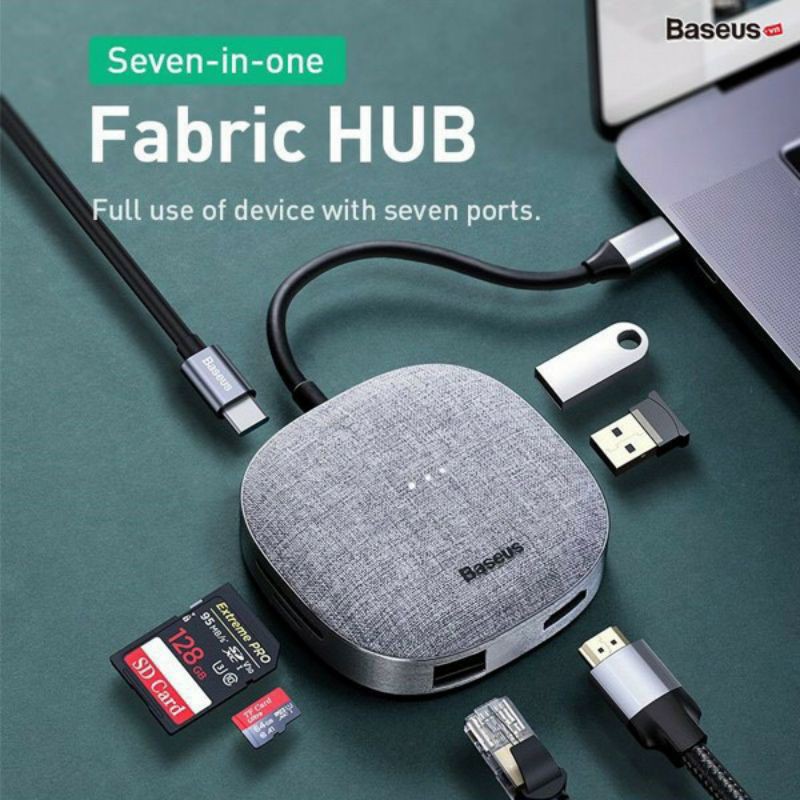 Hub chuyển đổi đa năng Baseus Fabric Series 7 in 1 Type-C Multifunctional HUB Adapter bảo hành 6 tháng