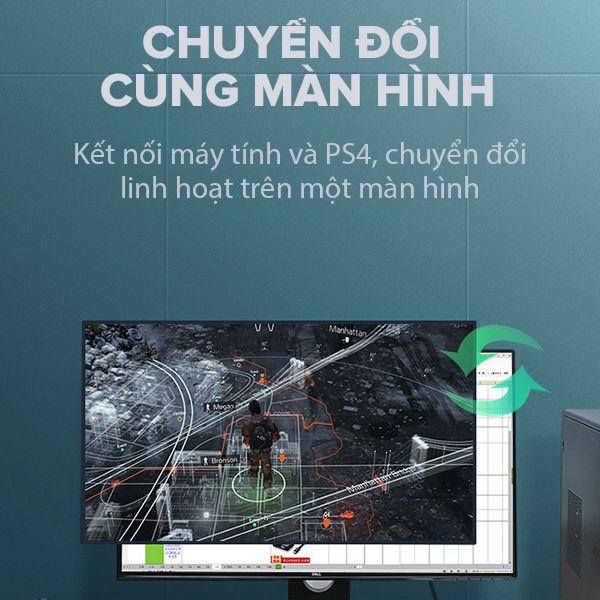 - HUB ROBOT HM103 giúp kết nối máy tính và PS4, kết nối thiết bị chơi game/ đầu thu TV, có thể chuyển đổi linh hoạt trên cùng 1 màn hình thông qua 1 nút chuyển đổi.