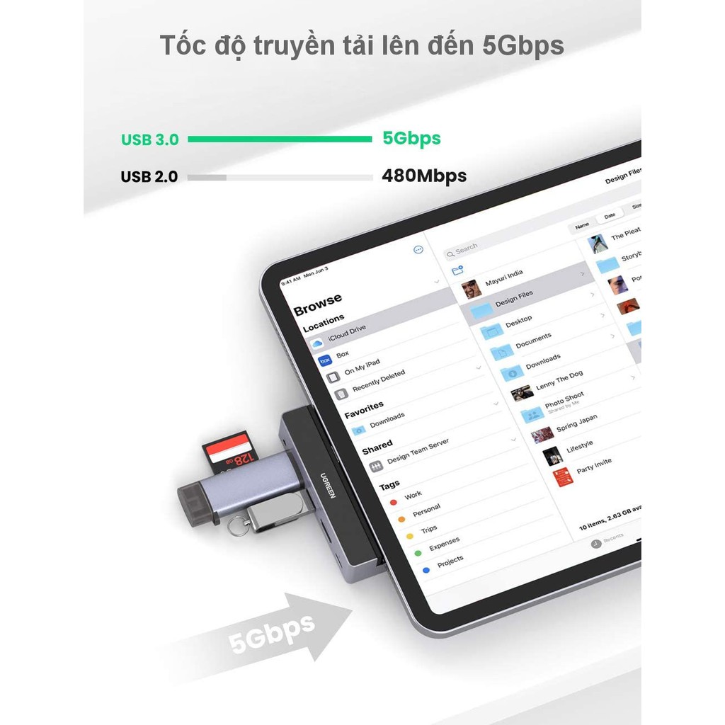 HUB USB Type-C 5 in 1 Ugreen 70688 là thiết bị chuyển đổi đa năng cao cấp chuyên dùng cho iPad Pro: