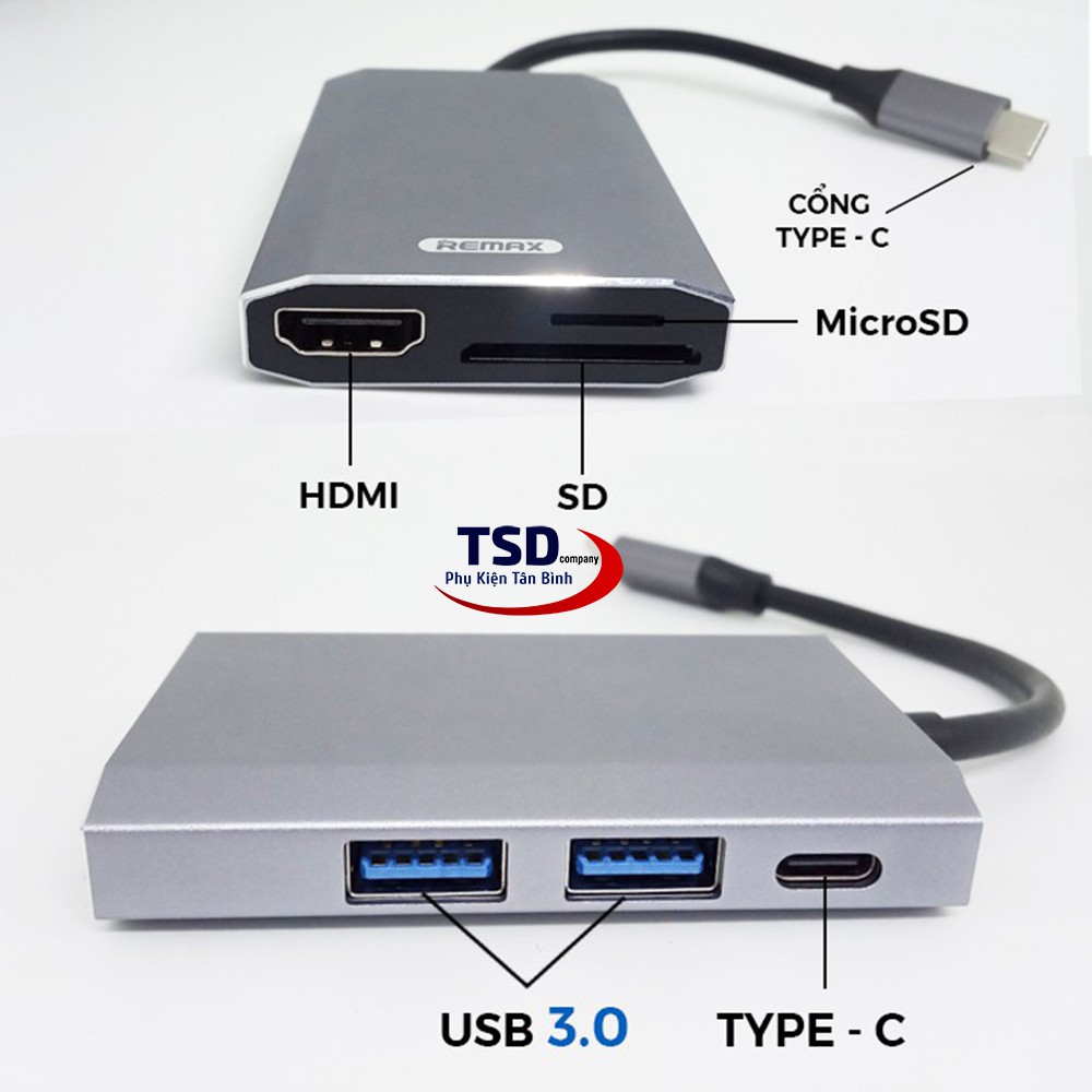 Giới thiệu [Mã 44ELSALE2 giảm 7% đơn 300K] HUB Chuyển TypeC Ra USB 3.0, HDMI, USB C, Thẻ Nhớ Chính Hãng Remax Tốc Độ Cao