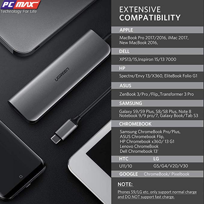 Ugreen 50209 hỗ trợ thêm 1 cổng USB type-C có thể kết nối một cáp sạc với cổng USB-C để sạc MacBook của bạn.
