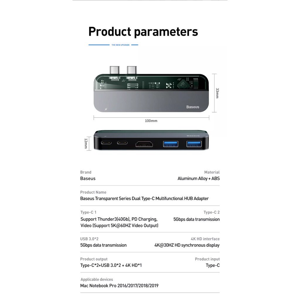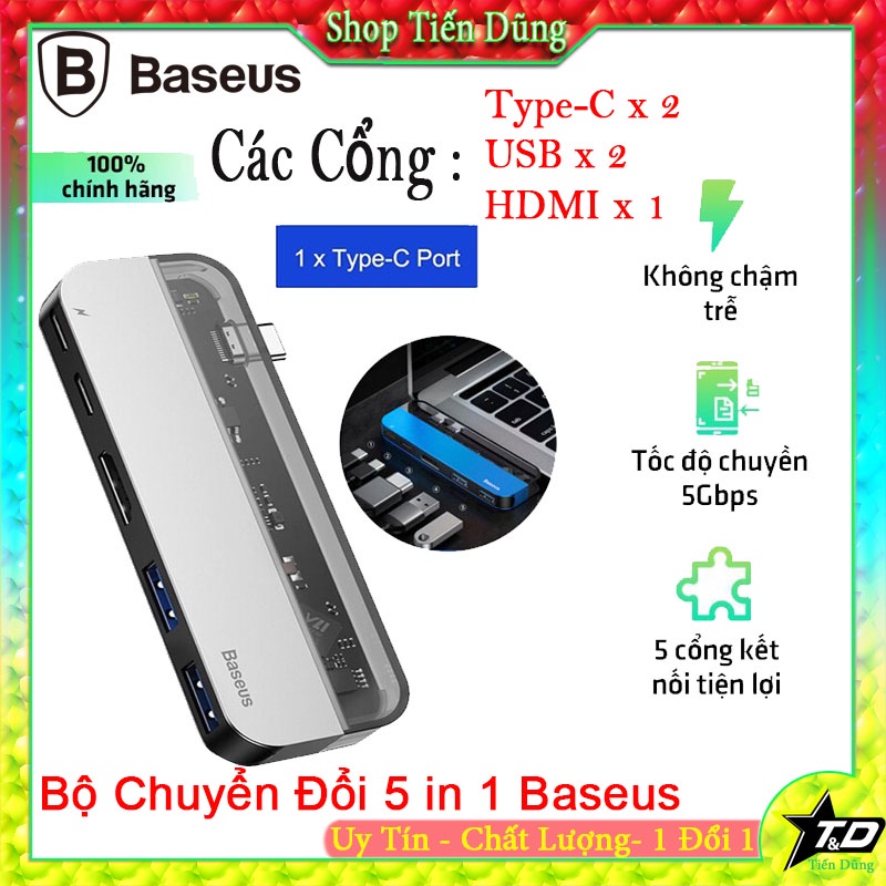 Hub đa năng Baseus Transparent Series 5 in 1 Multifunctional dùng cho Macbook/iPad Pro (Single C to C*2+USB3.0*2+HDMI).THÔNG SỐ VÀ ĐẶC ĐIỂM BASEUS 5 IN 1