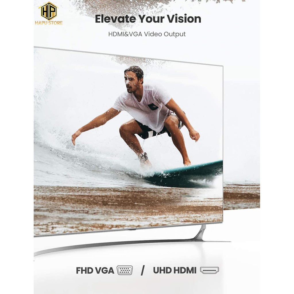Giới thiệu Hub đa năng Ugreen 80133 tích hợp HDMI, VGA, 3.5mm, LAN, USB, Đọc Thẻ, Sạc USB-C PD chính hãng - Hapustore