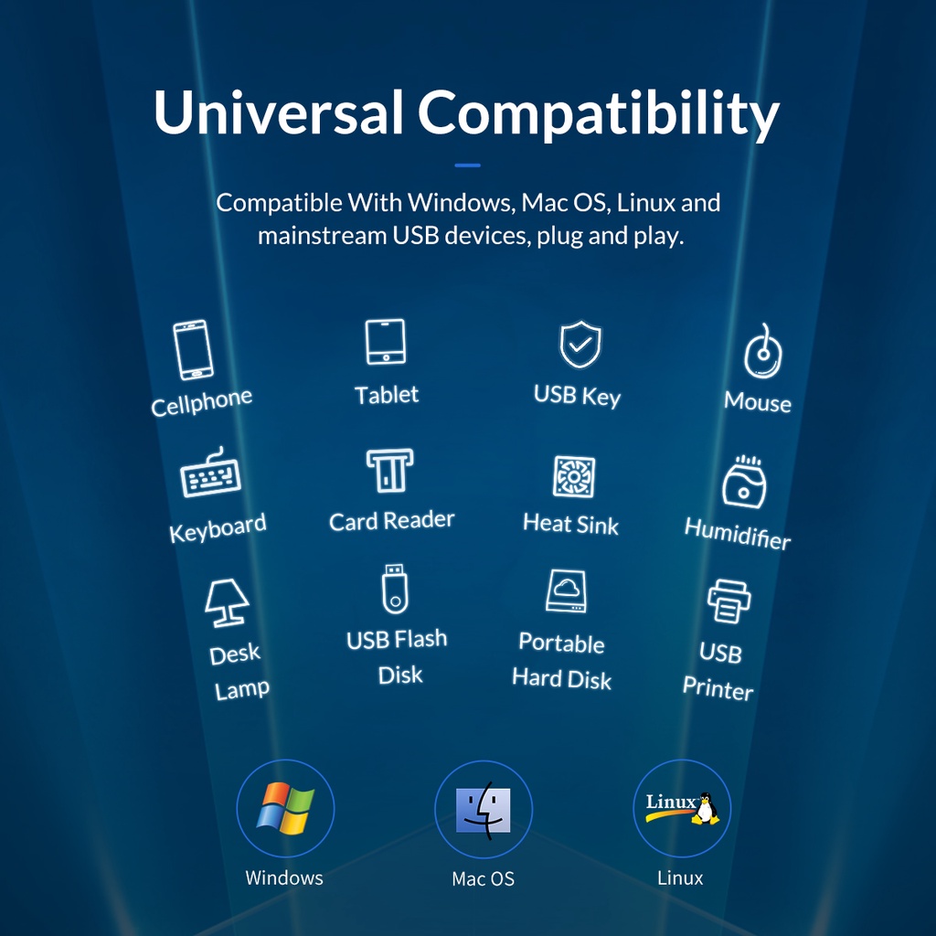 Khả năng tương thích và hiệu suất tối đa: Bộ chia cổng USB 3.0 đa cổng này tương thích với Windows XP/Vista/7/8, Linux, Mac OS Mac Pro, iMac, MacBook Air, MacBook Pro, MacBook và Mac mini.