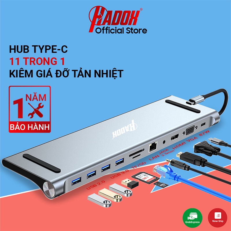Hub Type C 11in1 - Bộ cổng chuyển đổi HUB USB Type-C to HDMI, VGA, USB 3.0, SD, TF, PD, LAN, Audio cho Laptop, Macbook
