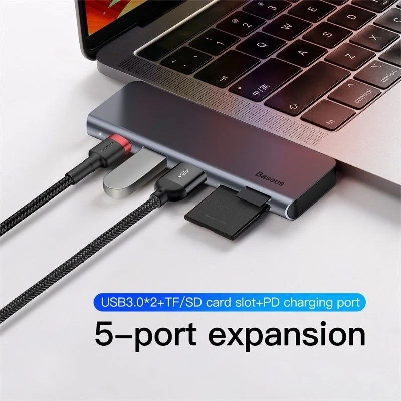 ✅ Tính năng cơ bản Bộ Hub chuyển đổi 5 trong 1 Baseus Harmonica Type C to USB 3.0, TF/SD Card Reader, Type C PD Adapter cho Macbook Pro/ Laptop Windows