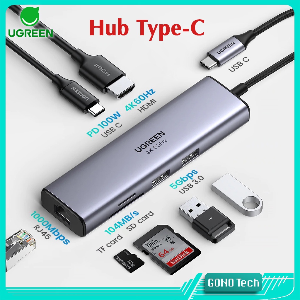 Máy tính & Laptop > Phụ Kiện Máy Tính > Bộ chia cổng USB & Đọc thẻ nhớ || Hub Type-C Ugreen CM511 CM512 Chuyển USB Type C sang (to) HDMI 4K SD/TF USB Ethernet RJ45 PD 100W | 60383 60384 60515Còn hàng