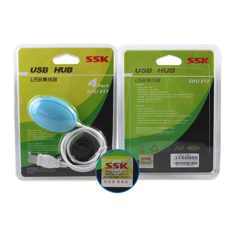 HUb usb bộ chia cổng usb 2.0 từ 1 ra 4 SSK SHU 017 giá rẻMàu sắc: xanh trắng
