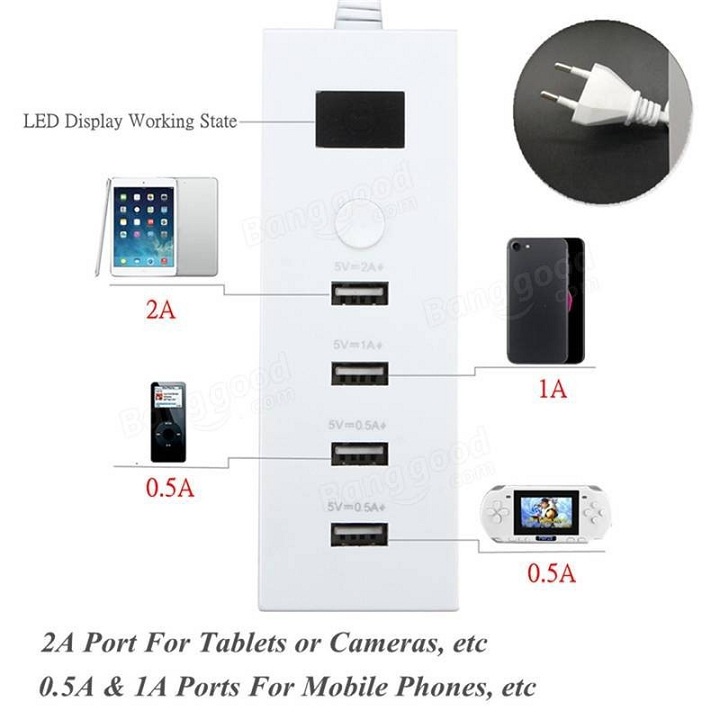 Nguồn ra: 1x5V–2A, 1x5V–1A, 2x5v-0,5A