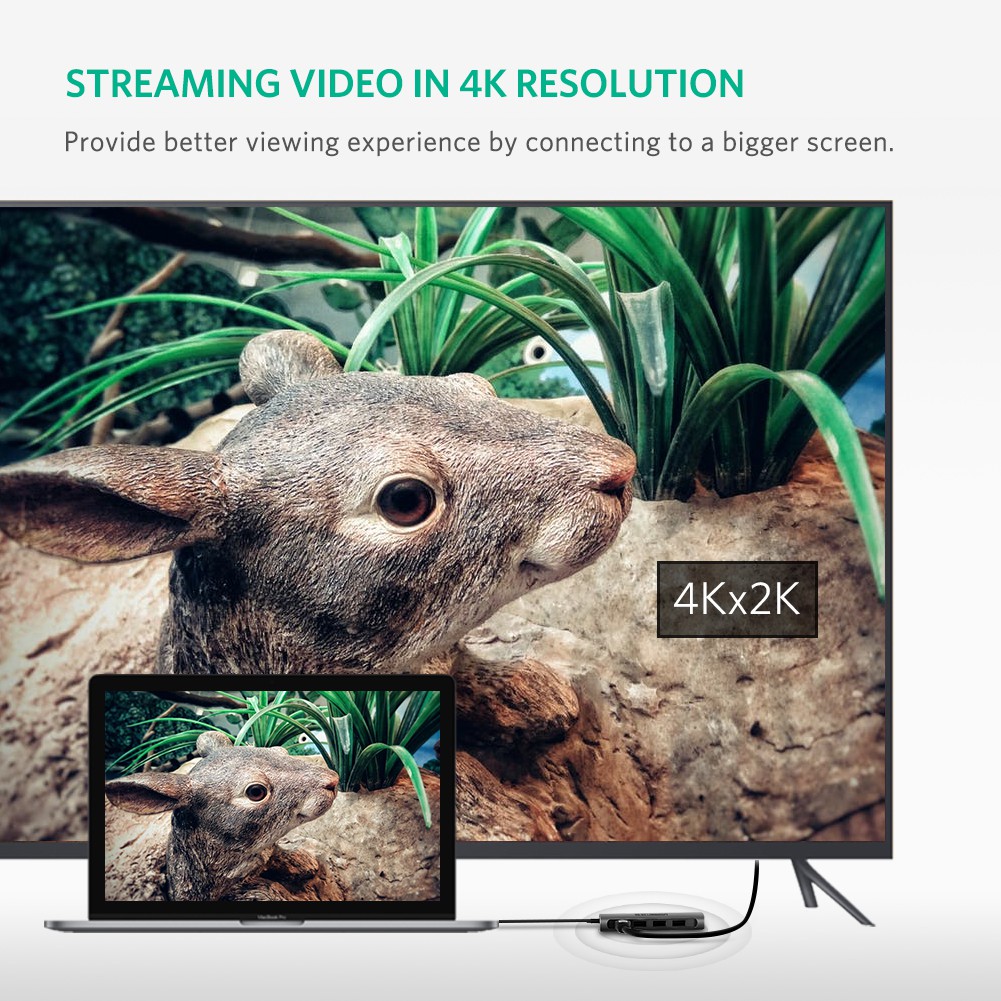 Hub USB Type-C 8 Cổng HDMI/USB 3.0/SD/TF/LAN Gigabit Ugreen 50538 là giải pháp hoàn hảo giúp bạn kết nối, truyền tải hình ảnh từ Laptop đến màn hình PC, T với độ phân giải lên đến 4K/30hz (4096x2160p).