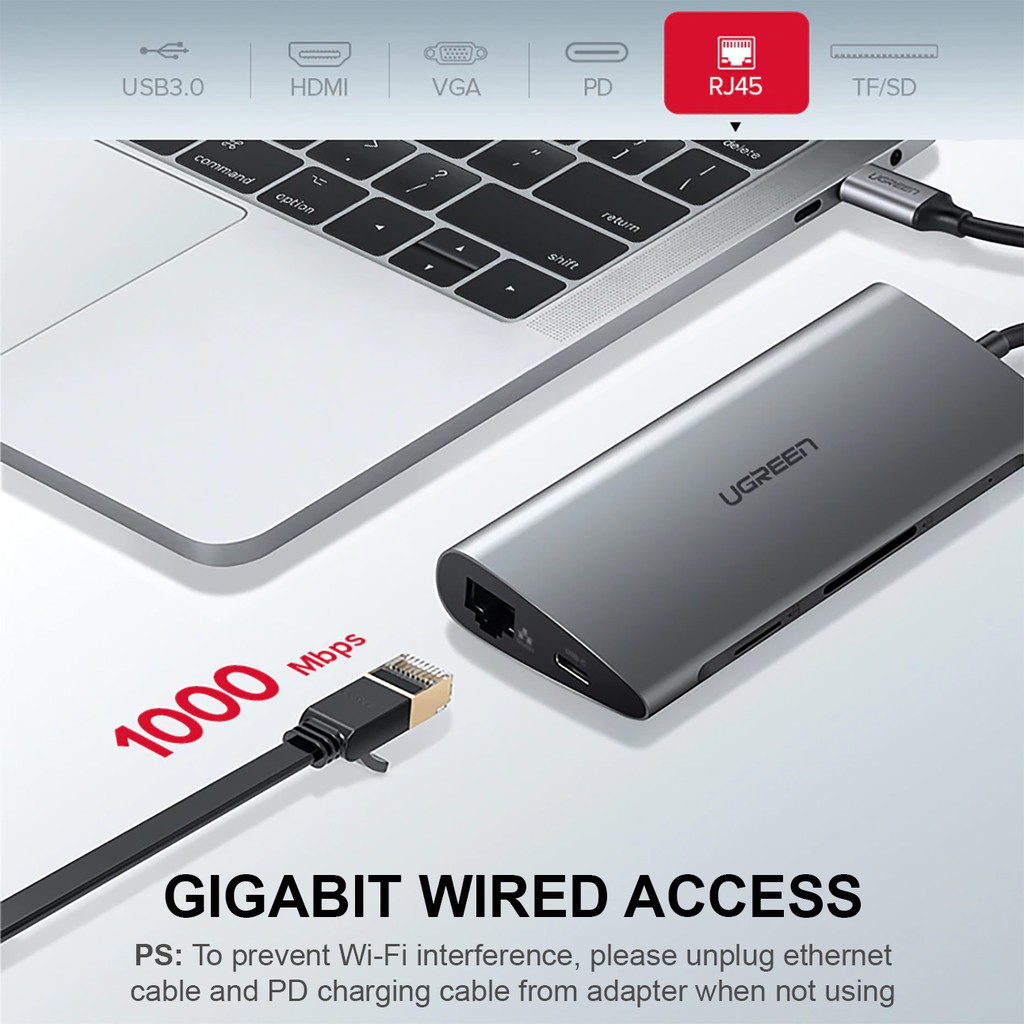 Máy tính & Laptop > Phụ Kiện Máy Tính > Bộ chia cổng USB & Đọc thẻ nhớ || Hub USB Type-C ra VGA, Ethernet, Hub USB 3.0, Card TF/SD cao cấp UGREEN CM147Còn hàng