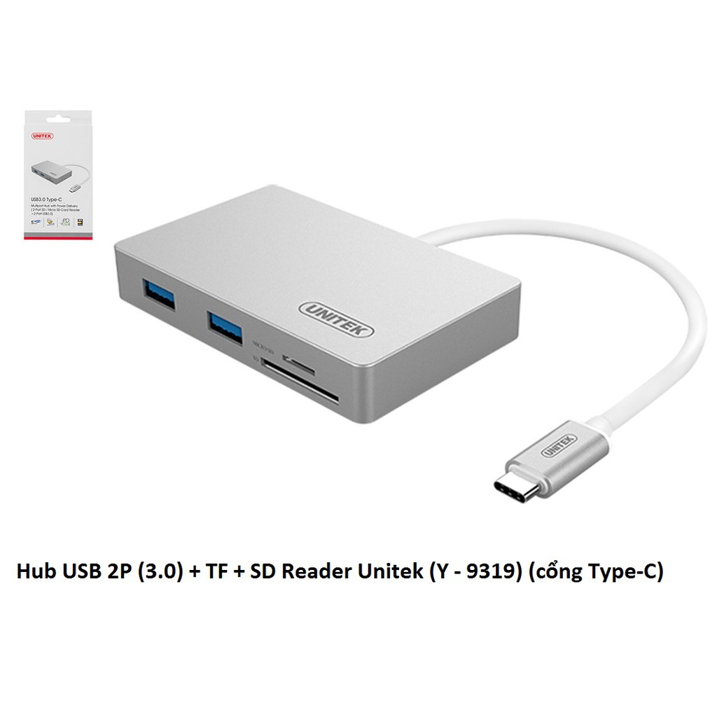Máy tính & Laptop > Phụ Kiện Máy Tính > Bộ chia cổng USB & Đọc thẻ nhớ || HUB USB TYPE C SANG 2 CỔNG USB 3.0 ĐỌC THẺ NHỚ TF MICRO SD UNITEK Y 9319Còn hàng