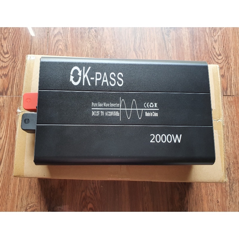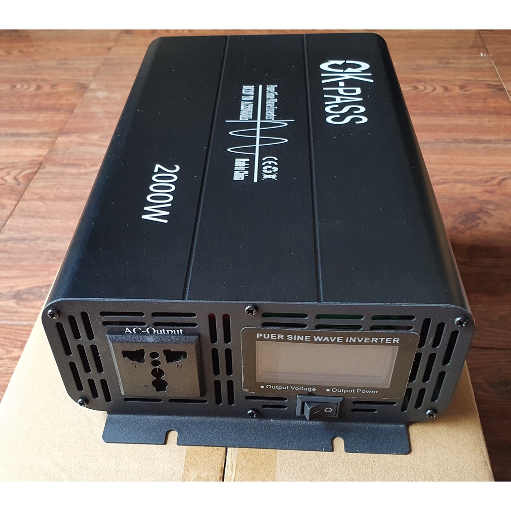 Bộ đổi điện sin chuẩn 2000W 12V sang 220V có màn hình hiển thị - Ok PASS 12V 2000W
