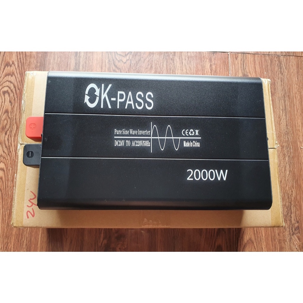 Bộ đổi điện sin chuẩn 2000W 24V sang 220V có màn hình hiển thị - Ok PASS 24V 2000W