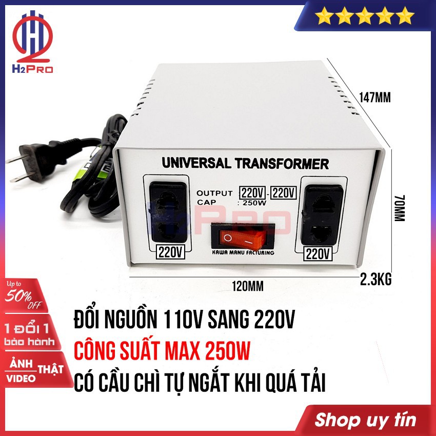 Nhà cửa & Đời sống > Dụng cụ & Thiết bị tiện ích > Dụng cụ > Khác || Bộ đổi nguồn 220V sang 110V-100V hoặc đổi nguồn 110V sang 220V KAWA H2Pro 250W cao cấp, chất lượng cao-an toànCòn hàng