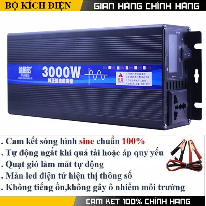 Thông số kỹ thuật bộ biến điện sin chuẩn 3000w 12V sang 220V:sine chuẩnĐiện áp vào:12v