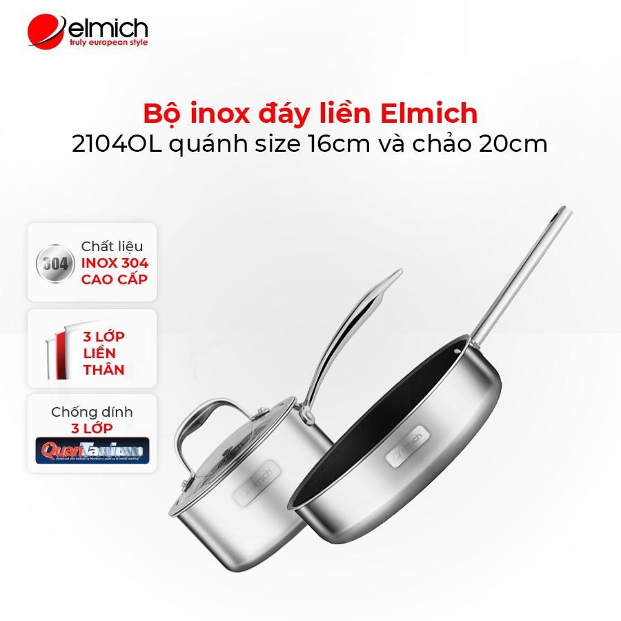 [Mã LIFECPMALL giảm 12% đơn 250K] Bộ inox đáy liền Elmich 2104OL quánh size 16cm và chảo 20cm