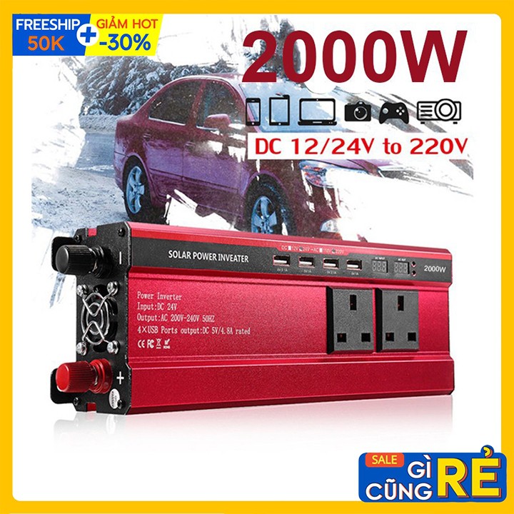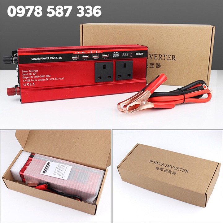 Bộ Inverter 2000W Kích điện 12V sang 220V đồng hồ hiển thị