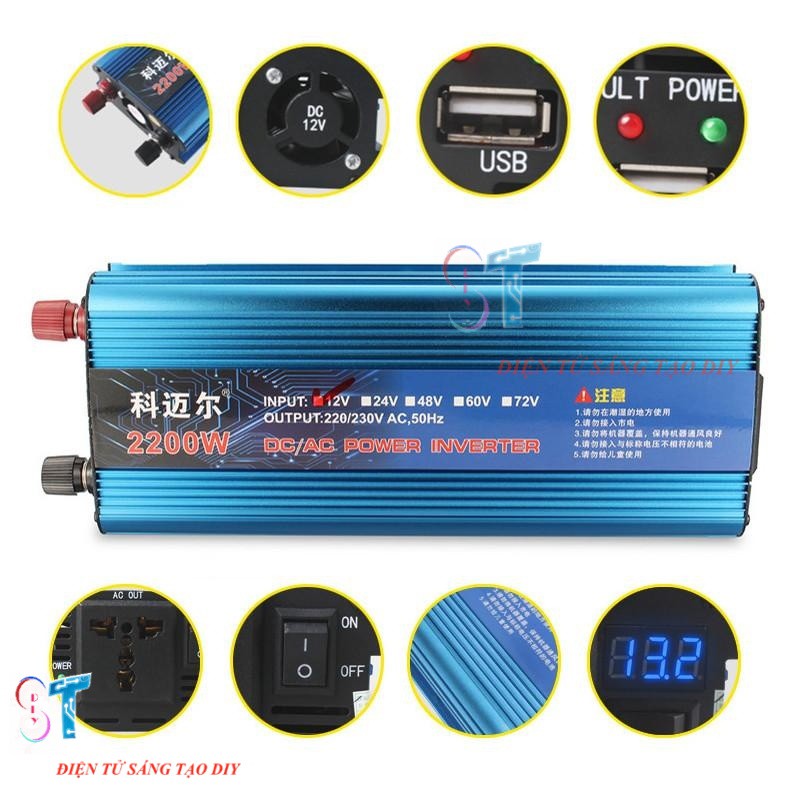 Giới thiệu Bộ Inverter Kích Điện 12VDC Lên 220VAC Có LED Hiển Thị 2200W