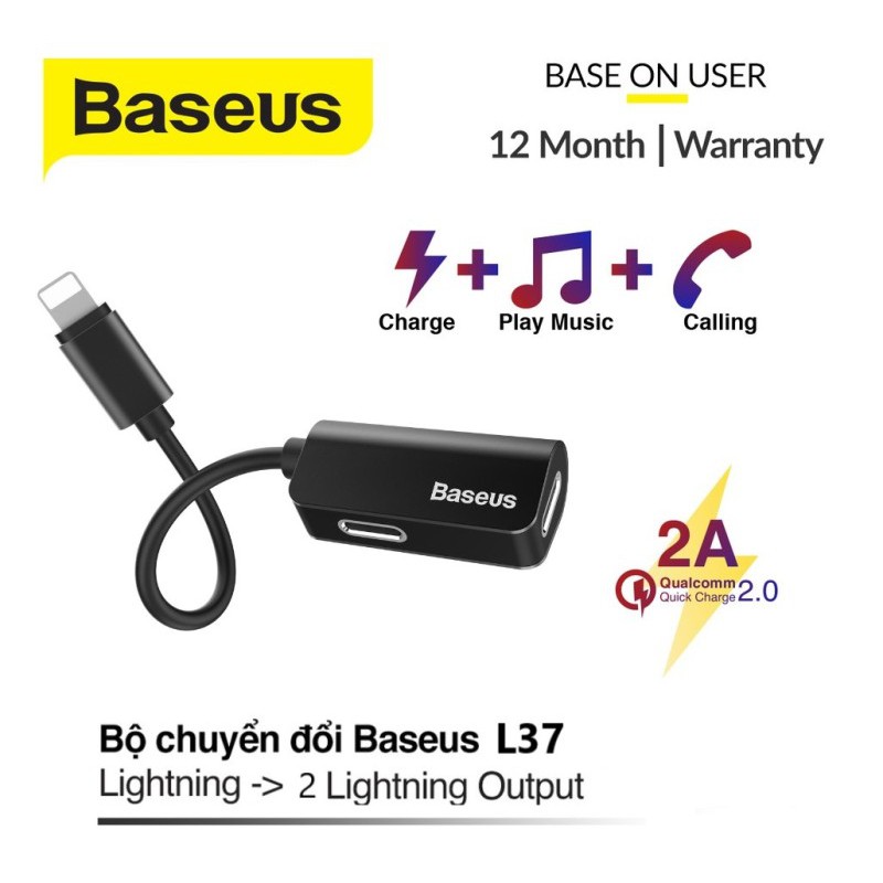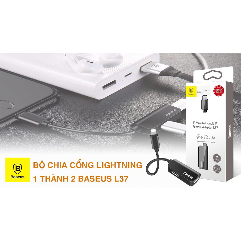 Điện Thoại & Phụ Kiện > Phụ kiện > Cáp, sạc & bộ chuyển đổi > Cáp & Bộ chuyển đổi di động || Jack Chuyển Đổi iPhone 2 in 1 Vừa Sạc Vừa Nghe Có Mic Cổng Lightning Baseus L37Còn hàng