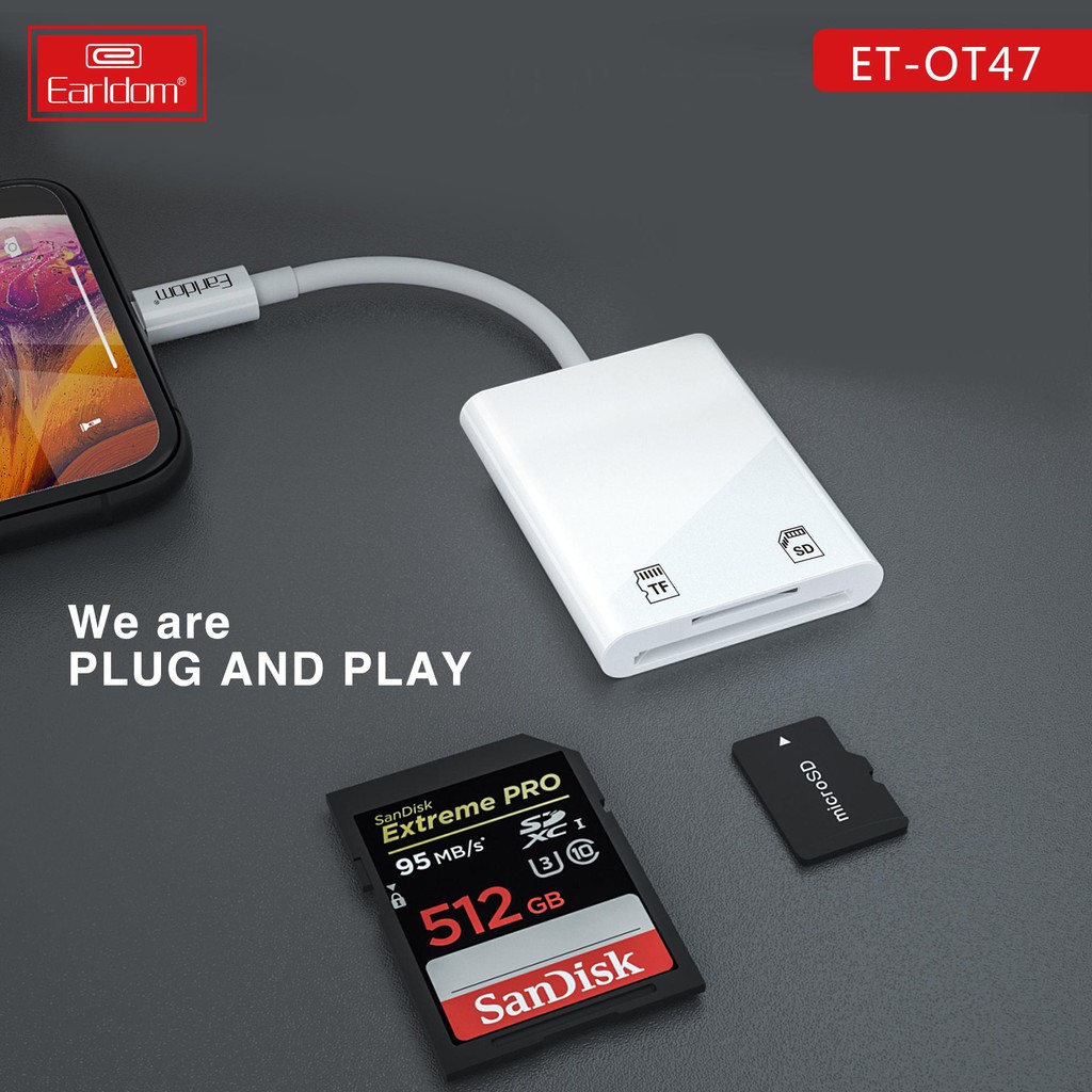- nếu bạn cảm thấy khó khăn khi cần tải ảnh, video từ thẻ nhớ sd hoặc tf lên ipad và iphone thì sản phẩm jack chuyển đổi từ lightning sang đầu đọc thẻ nhớ sd hoặc tf earldom et-ot47 là sản phẩm dành cho bạn
