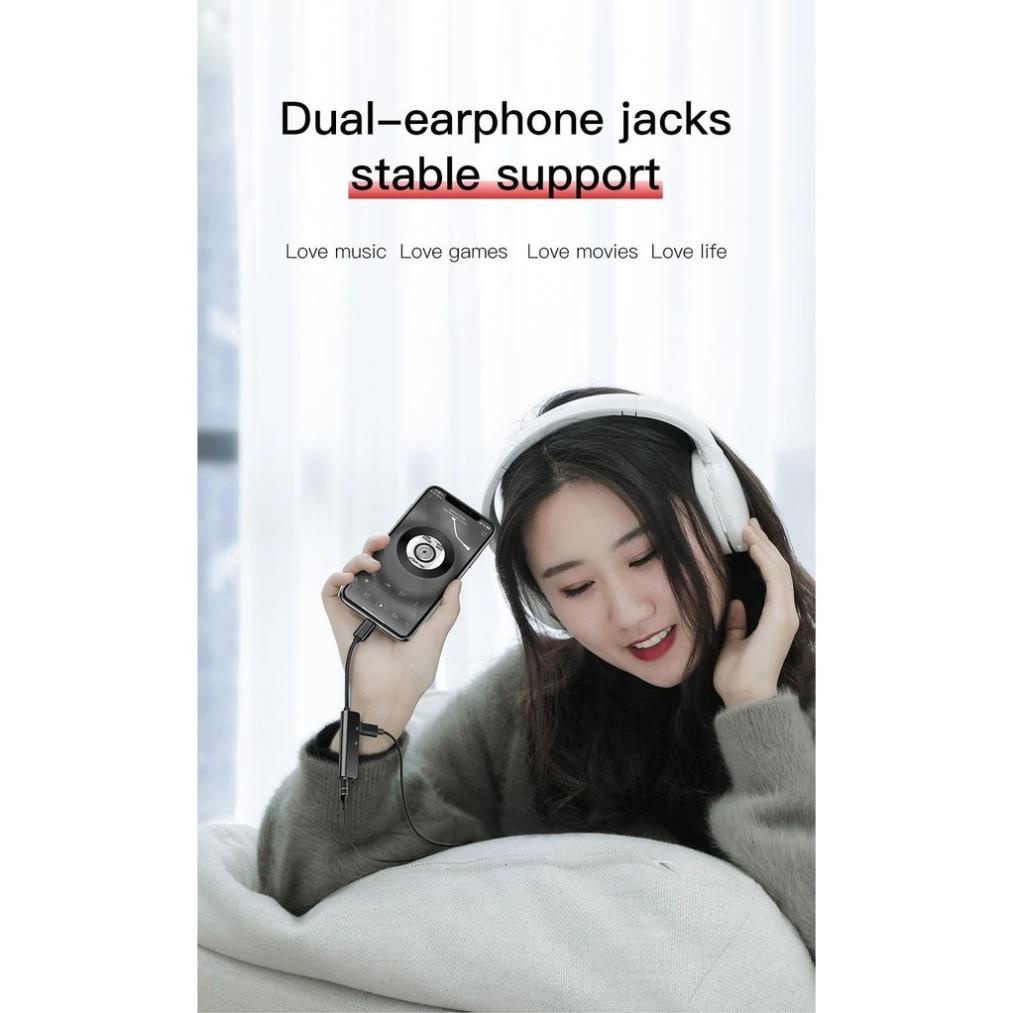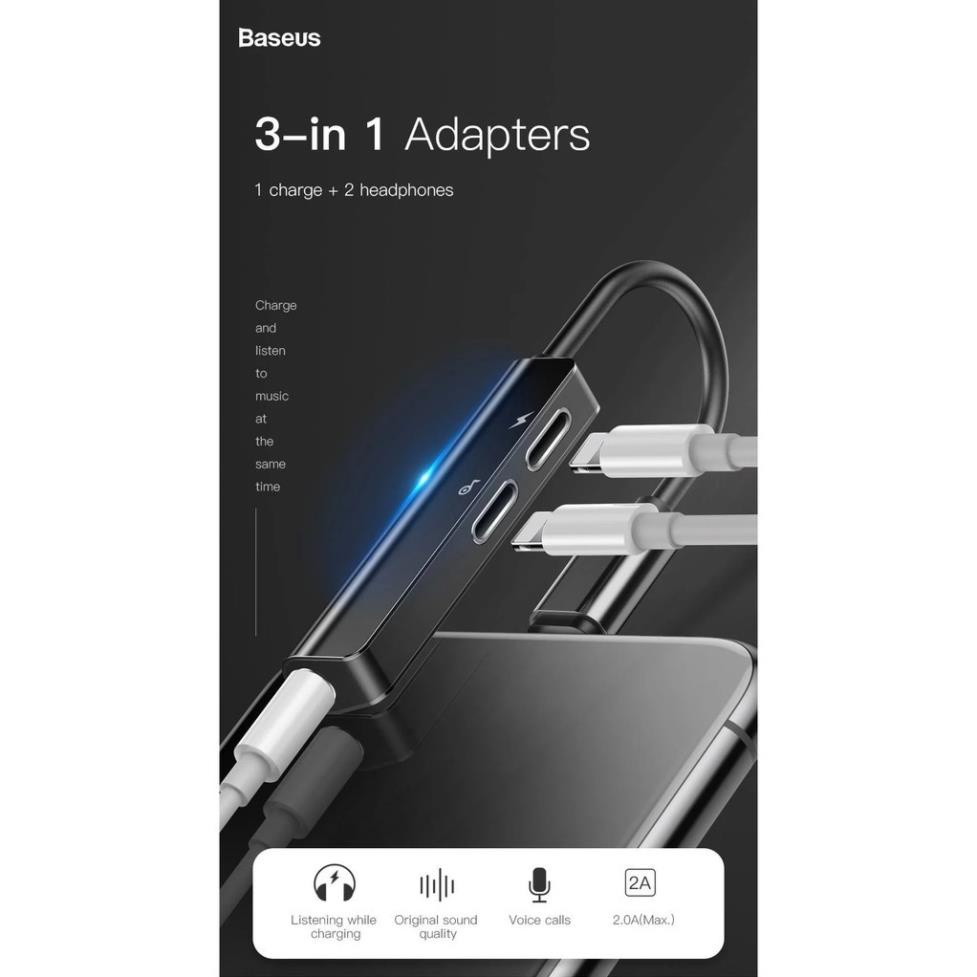 Điện Thoại & Phụ Kiện > Phụ kiện > Cáp, sạc & bộ chuyển đổi > Cáp & Bộ chuyển đổi di động || Jack chuyển đổi tai nghe iphone l52 3 in 1 vừa sạc vừa nghe có mic chân lightning chính hãng baseus cho các dòng iphoneCòn hàng