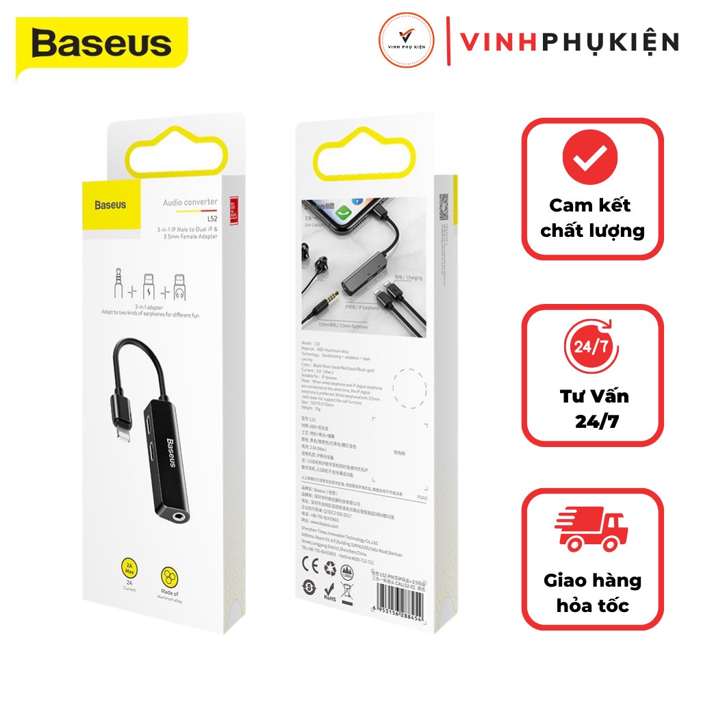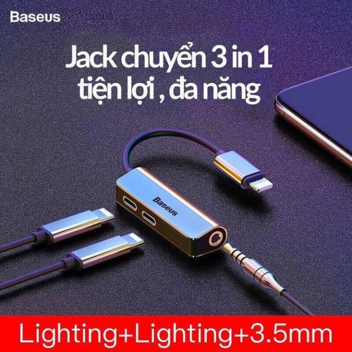 Jack chuyển đổi tai nghe iphone l52 3 in 1 vừa sạc vừa nghe có mic chân lightning chính hãng baseus cho các dòng iphone