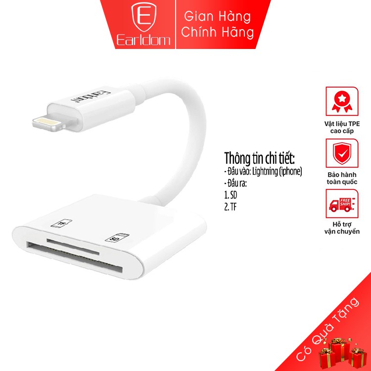 JACK CHUYỂN ĐỔI TỪ LIGHTNING SANG ĐẦU ĐỌC THẺ NHỚ SD,TF CHO IPHONE EARLDOM ET-OT47