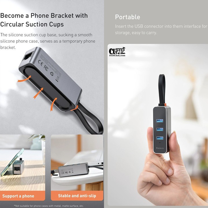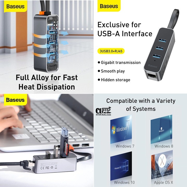 Giới thiệu JACK CHUYỂN USB A SANG 3xUSB A và CỔNG LAN RJ45 BASEUS STEEL CANNON CHÍNH HÃNG HÀNG CHUẨN