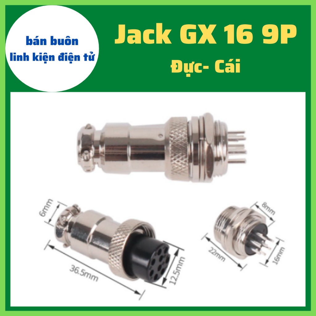 Giới thiệu Jack GX16 9p (đực+ cái), Giắc GX16 9P bộ đực cái 16mm, GX16-9P