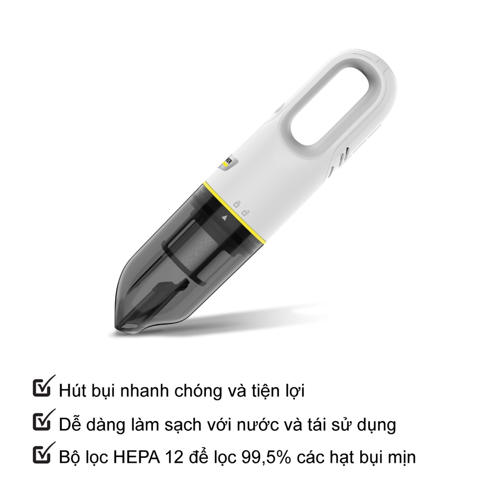 Thiết Bị Điện Gia Dụng > Thiết bị điện gia dụng nhỏ > Máy hút bụi & Thiết bị làm sạch sàn || [Karcher VCH2] Máy hút bụi cầm tay mini dùng pin Karcher VCH 2 - Hàng chính hãng.Còn hàng