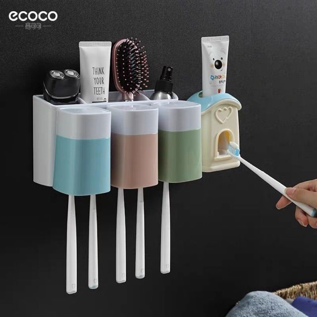 Kệ cắm chải, để đồ ecoco cao cấp không cần khoan tường. Với thiết kế 3 cốc 3 màu giúp các gia đình đặc biệt những gia đình có con nhỏ phân biệt được đồ dùng riêng. Đồng thời tạo niềm yêu thích trong công việc vệ sinh cá nhân của bé. Phần úp cốc và cắm chải sẽ giúp cho cốc và bàn chải của bạn luôn khô ráo, sạch sẽ. Kèm thêm ngăn để đồ tiện lợi.Với miếng dính thần thánh không cần khoan tường đặc trưng của hãng ECOCO sẽ giúp bạn biến căn phòng tắm trở nên gọn gàng, sang trọng hơn bao giờ hết.