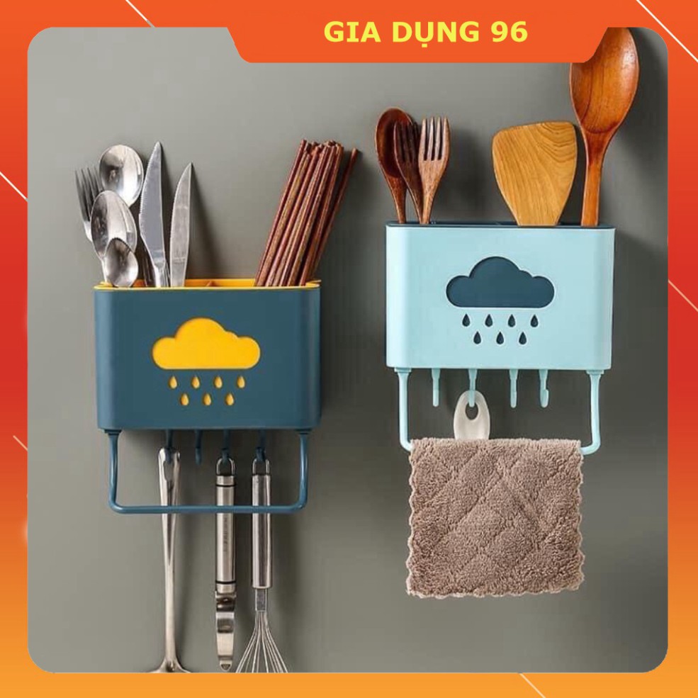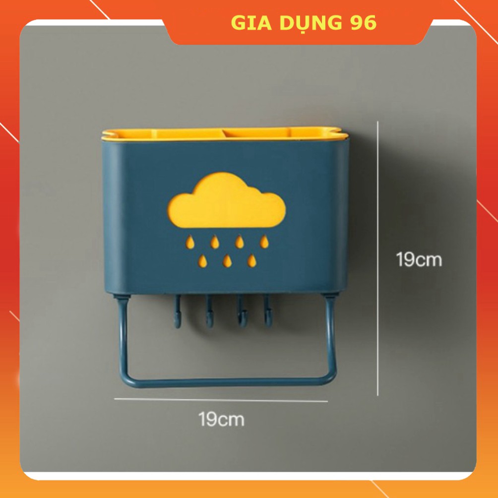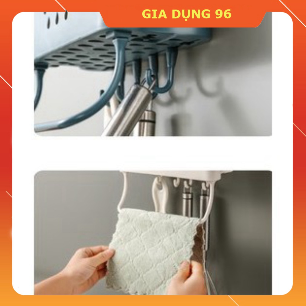 - Kệ đám mây treo tường còn có chỗ để treo khăn. Ngoài kệ còn có các móc nhỏ để treo các vật dụng khác như phới đánh trứng, nạo gọt củ quả...