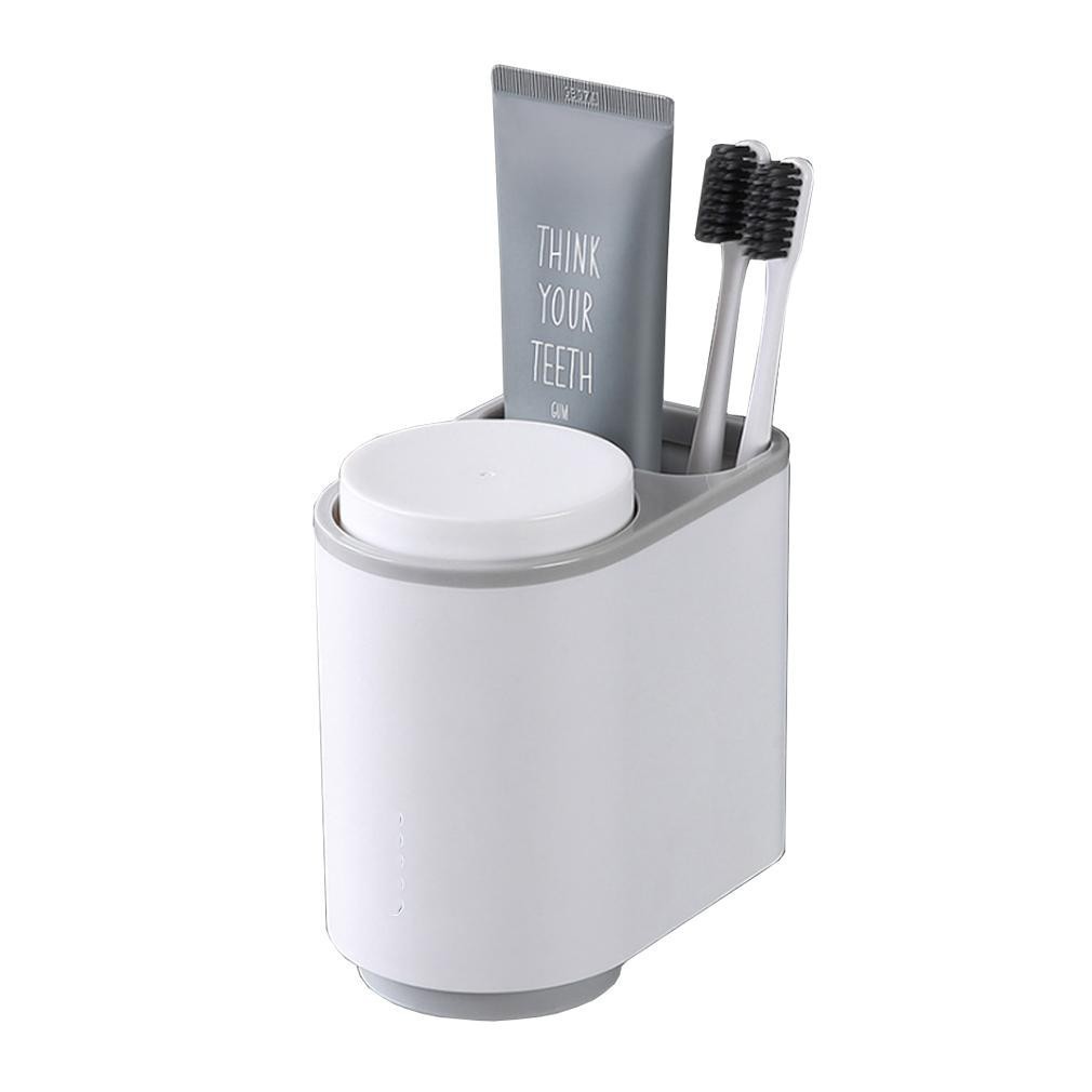 - Thiết kế nhỏ gọn nhưng có thể để được nhiều đồ: 2 cốc ( Hút nam châm ) 2 bàn chải, 1 tuýp kem đánh răng, 1 dao cạo râu...